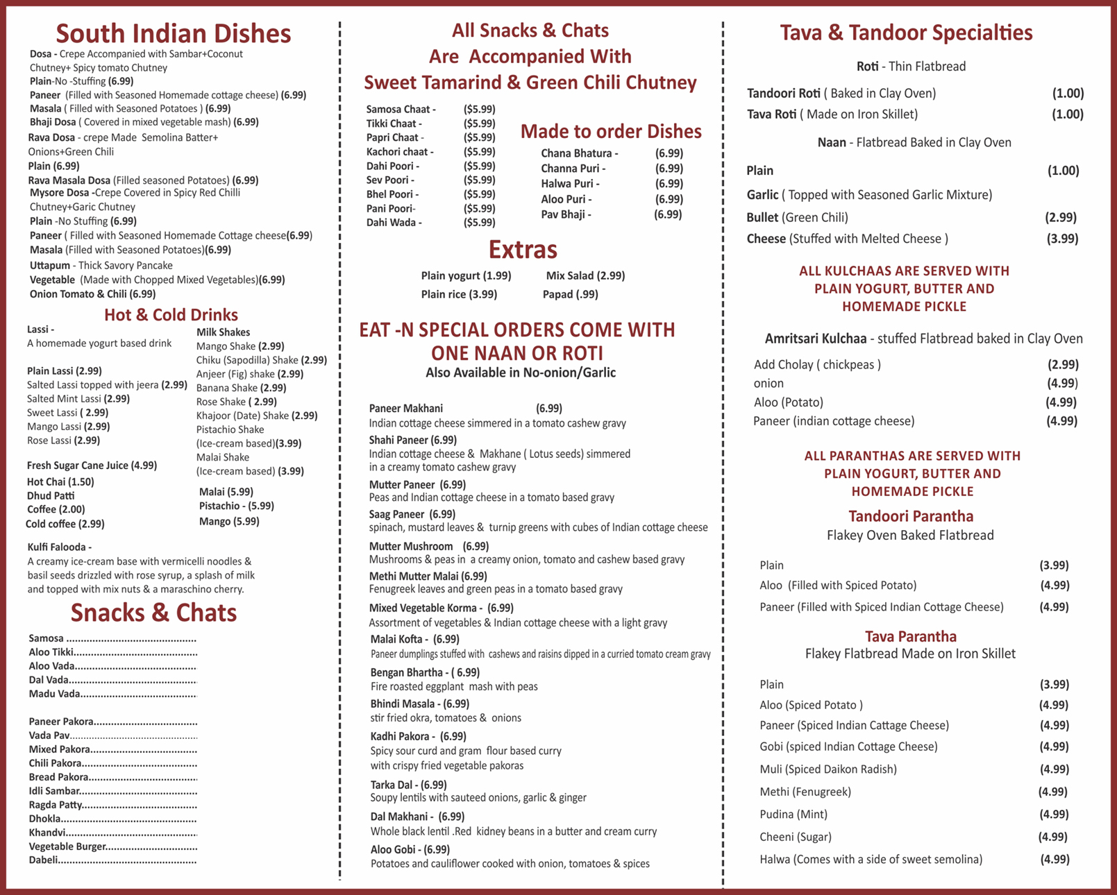 - Down-to-earth bakery for take-home Indian sweets & a vegetarian buffet for both lunch & dinner.